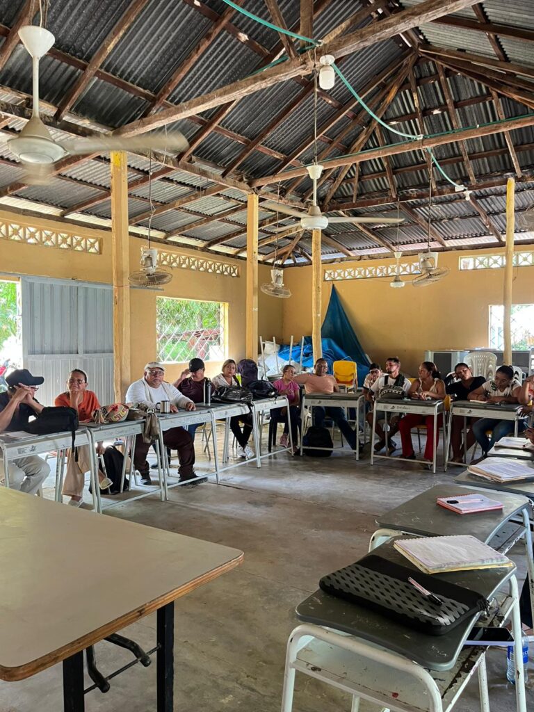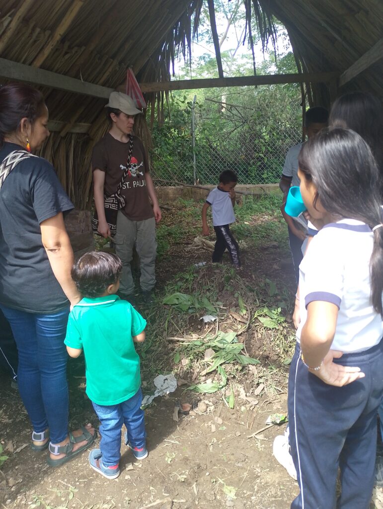 Patricia Chañorro, leader paysanne et mère engagée pour la cause de l’agroécologie scolaire de Filotopie dans les Montes de María, à El Palmar, a facilité les échanges et la mise en relation lors de la visite d’un fonctionnaire du ministère de l’Agriculture, Andrés Felipe Páez, qui souhaitait découvrir les espaces d’apprentissage ainsi que le processus d’agroécologie développé au sein du centre éducatif.
